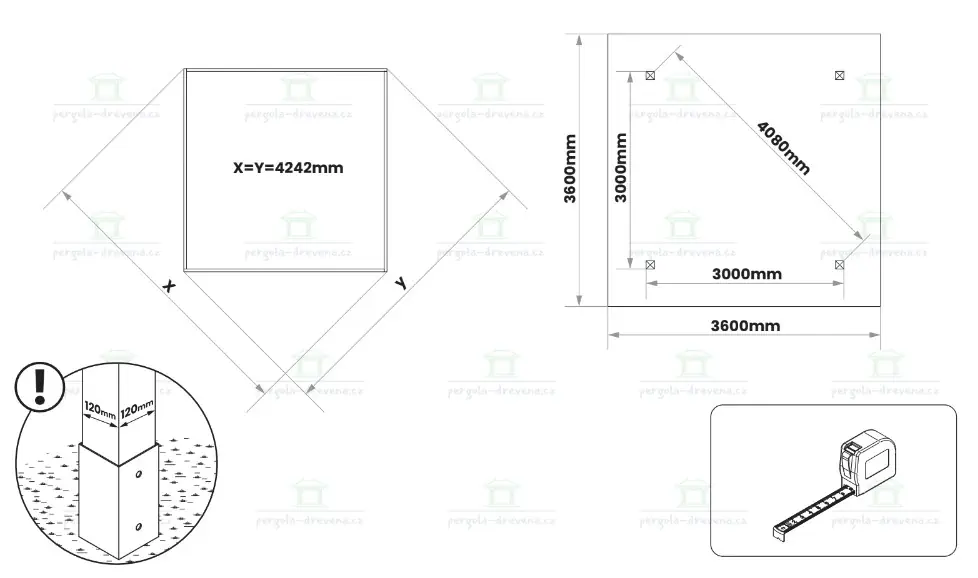 | Vnější rozměr mezi stojkami | 300 cm x 300 cm |