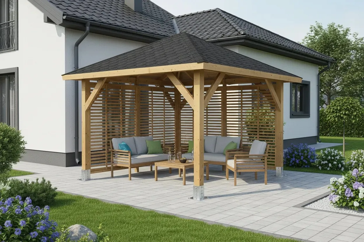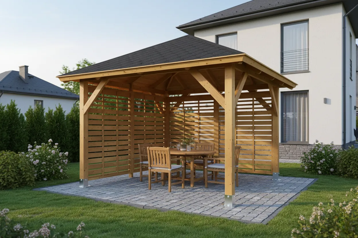 Objednejte si altán včas, zejména během letní sezóny. Dodací lhůta v této době je obvykle 2–3 týdny. Dřevo má odolnou povrchovou úpravu, takže jej lze bezpečně skladovat a montovat později.