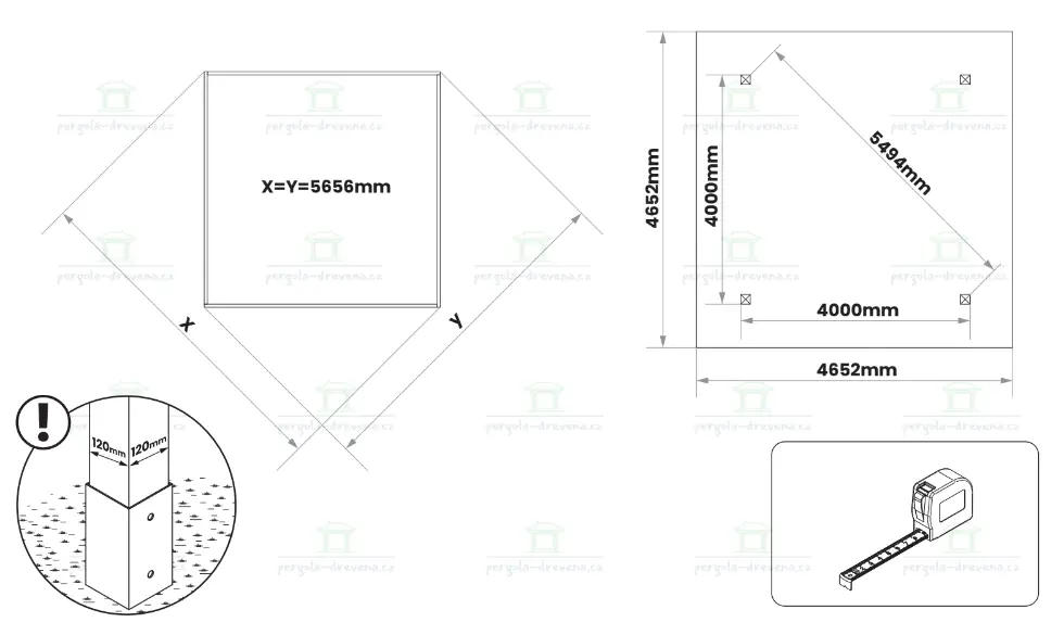 | Vnější rozměr mezi stojkami | 400 cm x 400 cm |
