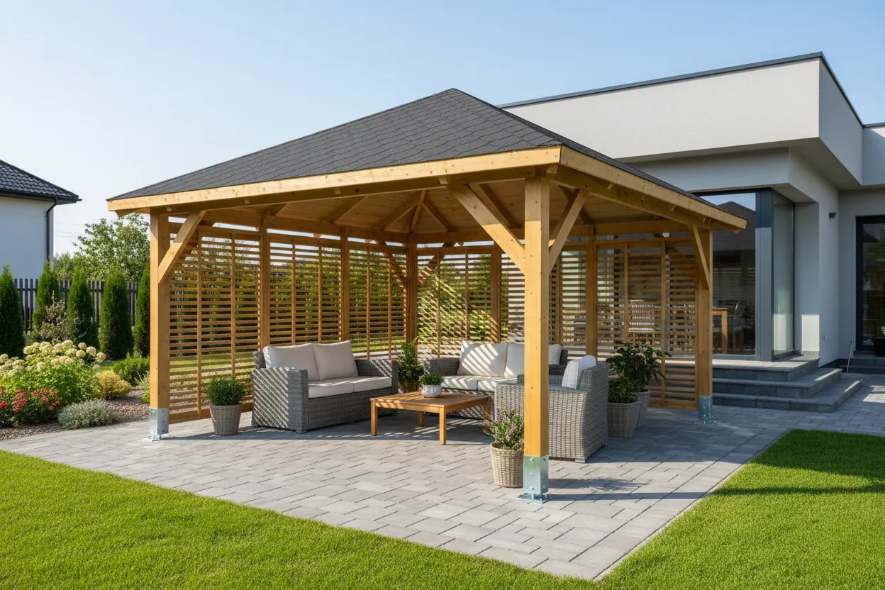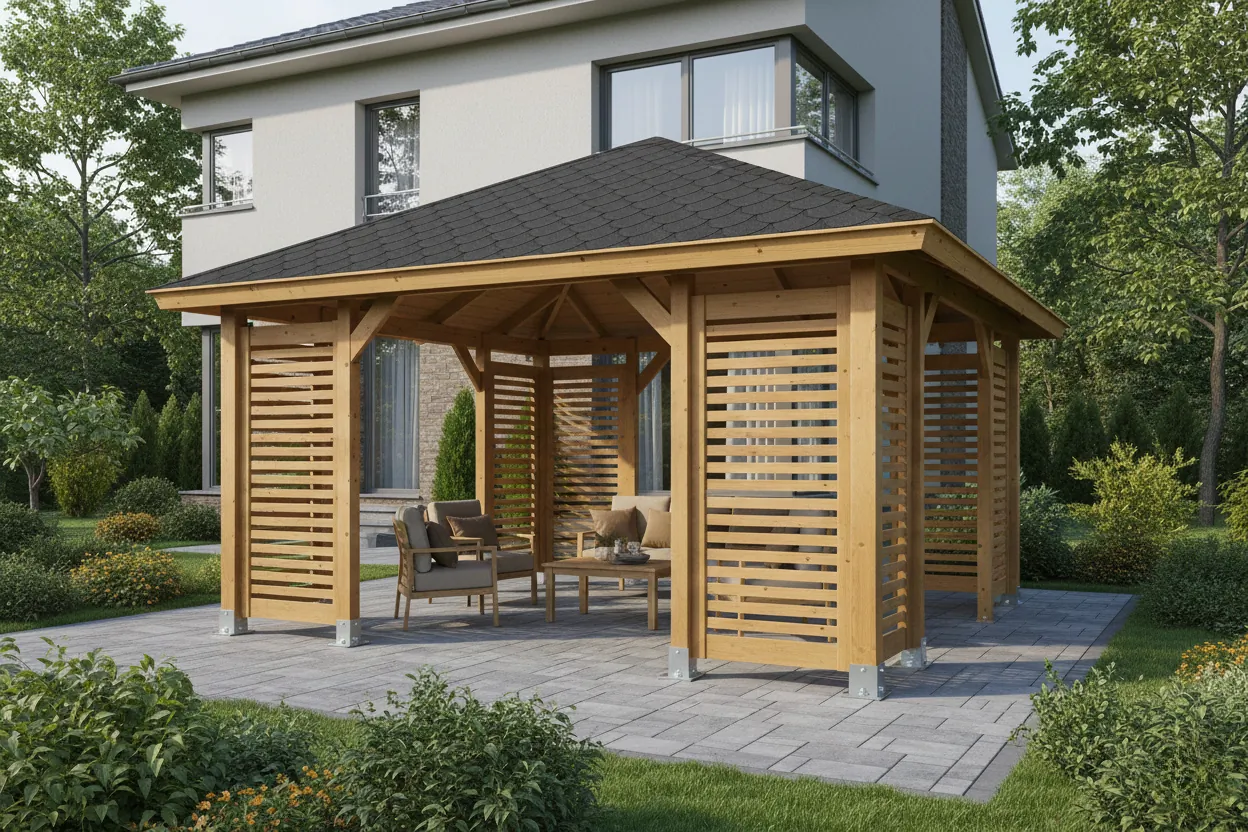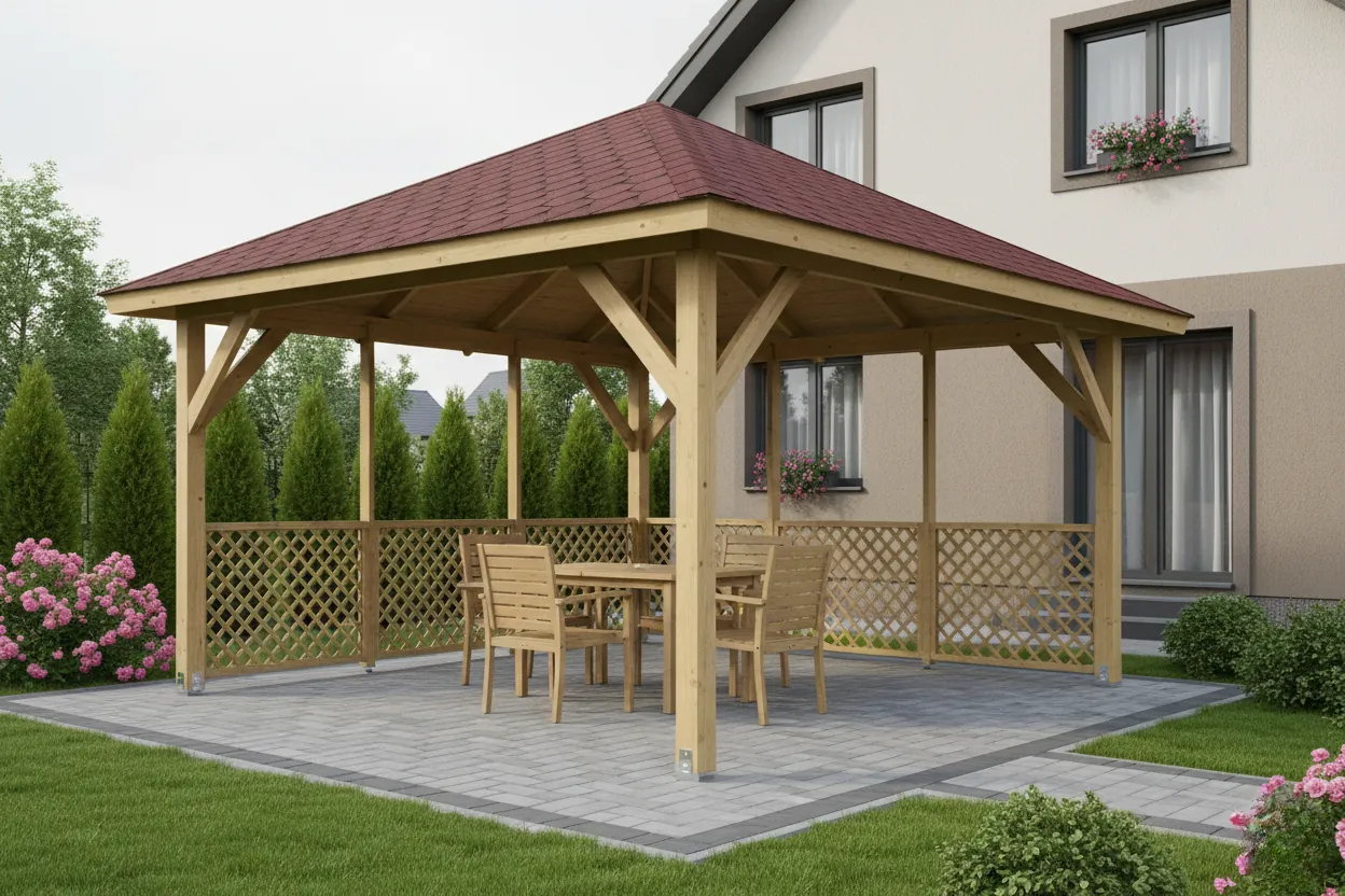 Objednejte si altán včas, zejména během letní sezóny. Dodací lhůta v této době je obvykle 2–3 týdny. Dřevo má odolnou povrchovou úpravu, takže jej lze bezpečně skladovat a montovat později.