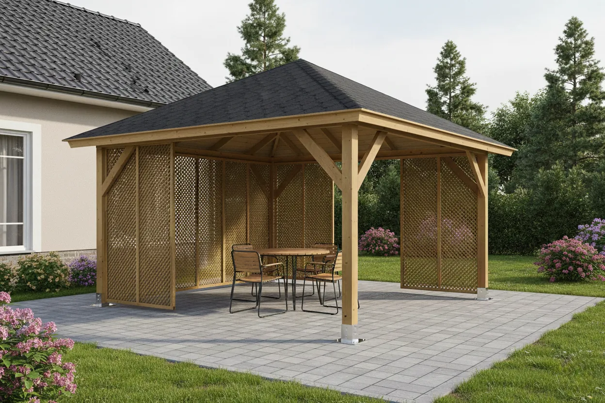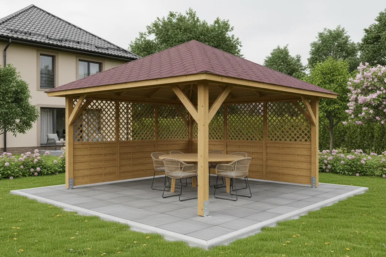 Zahradní Altán Kuba L je ideální pro rekreační využití zahrady. Montážní spojovací materiál je součástí dodávky, což zajišťuje snadnou montáž.