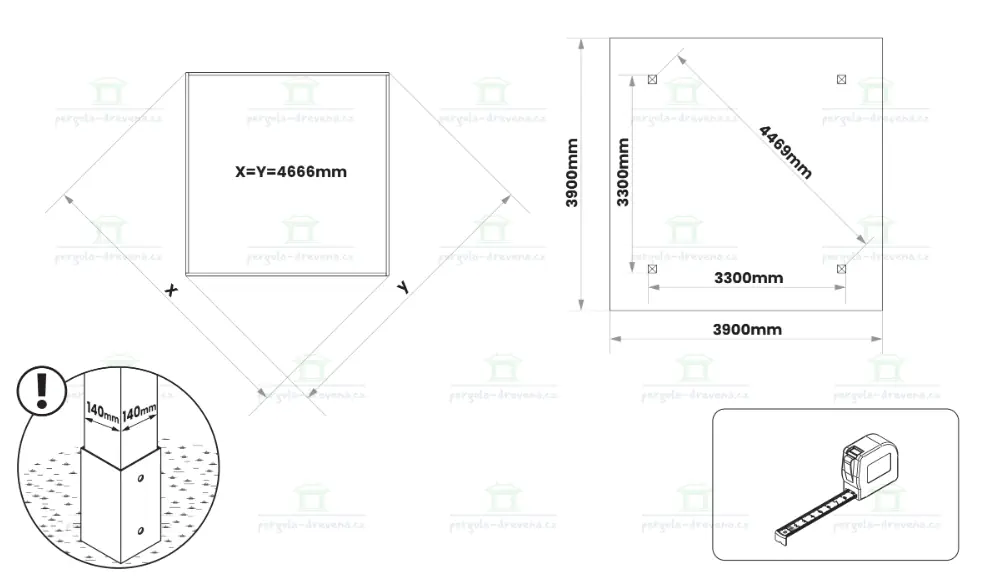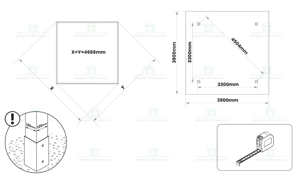 | Vnější rozměr mezi stojkami | 330 cm x 330 cm |