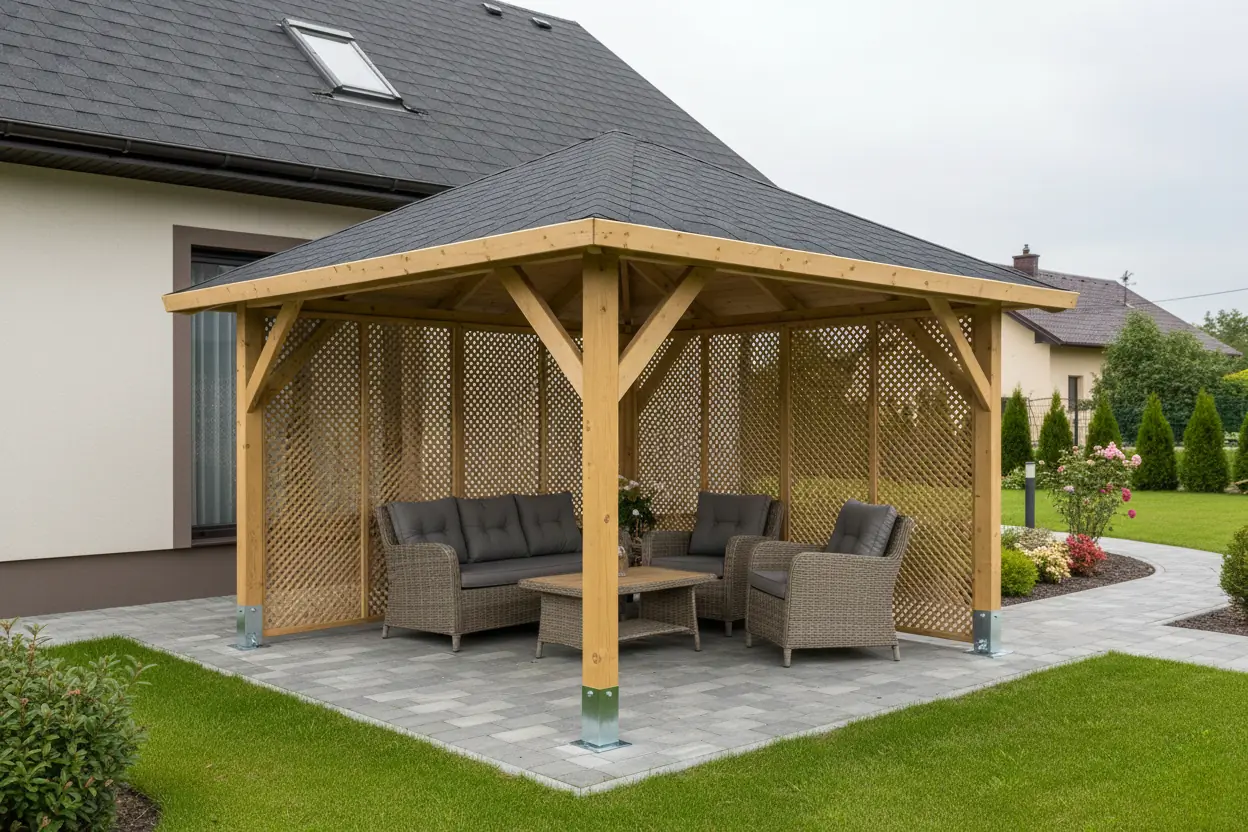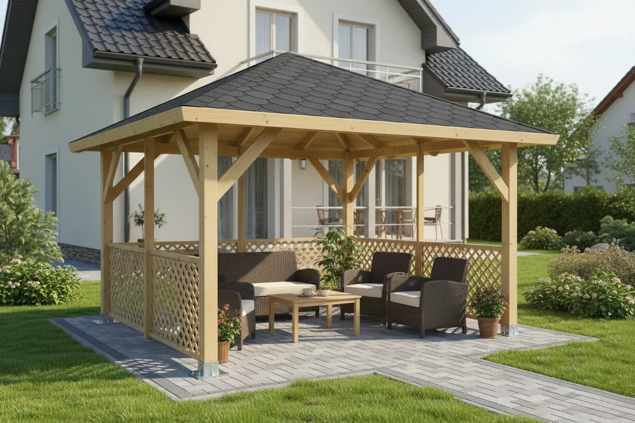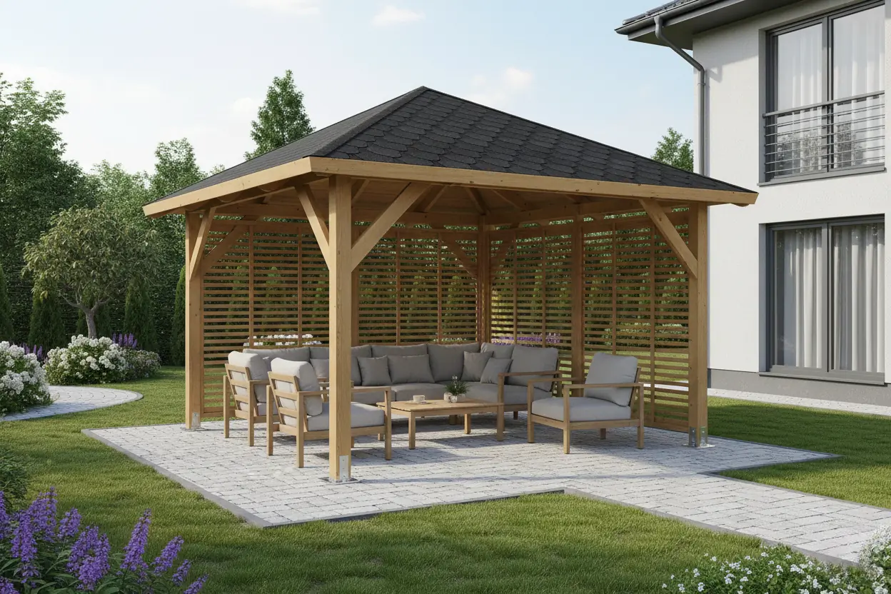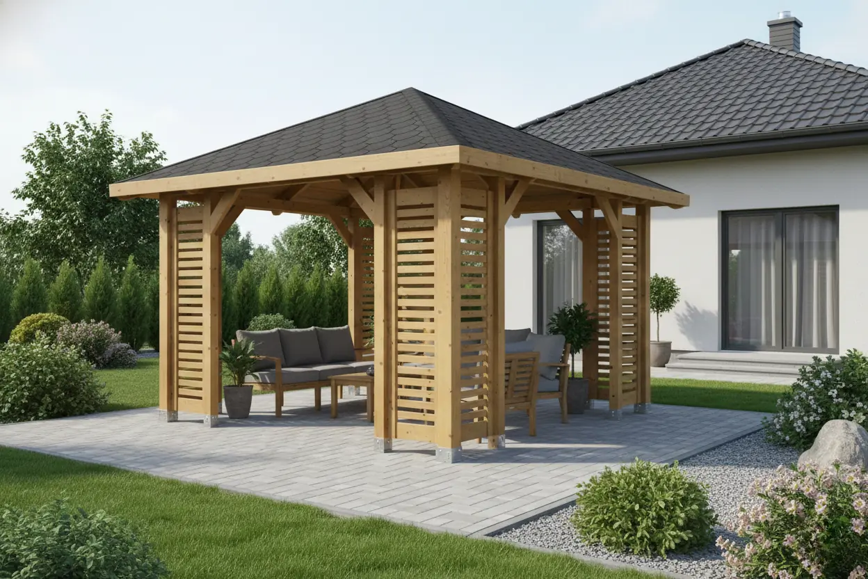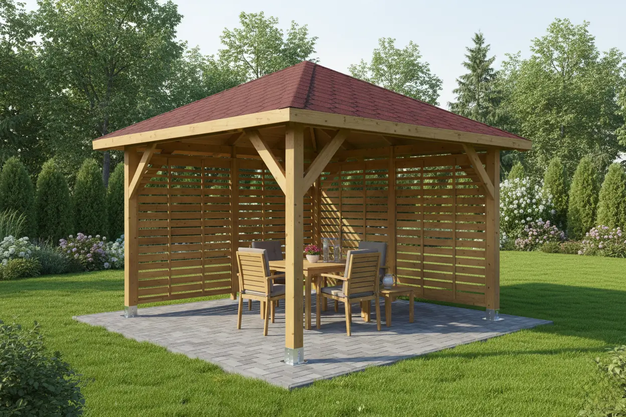Objednejte si altán včas, zejména během letní sezóny. Dodací lhůta v této době je obvykle 2–3 týdny. Dřevo má odolnou povrchovou úpravu, takže jej lze bezpečně skladovat a montovat později.