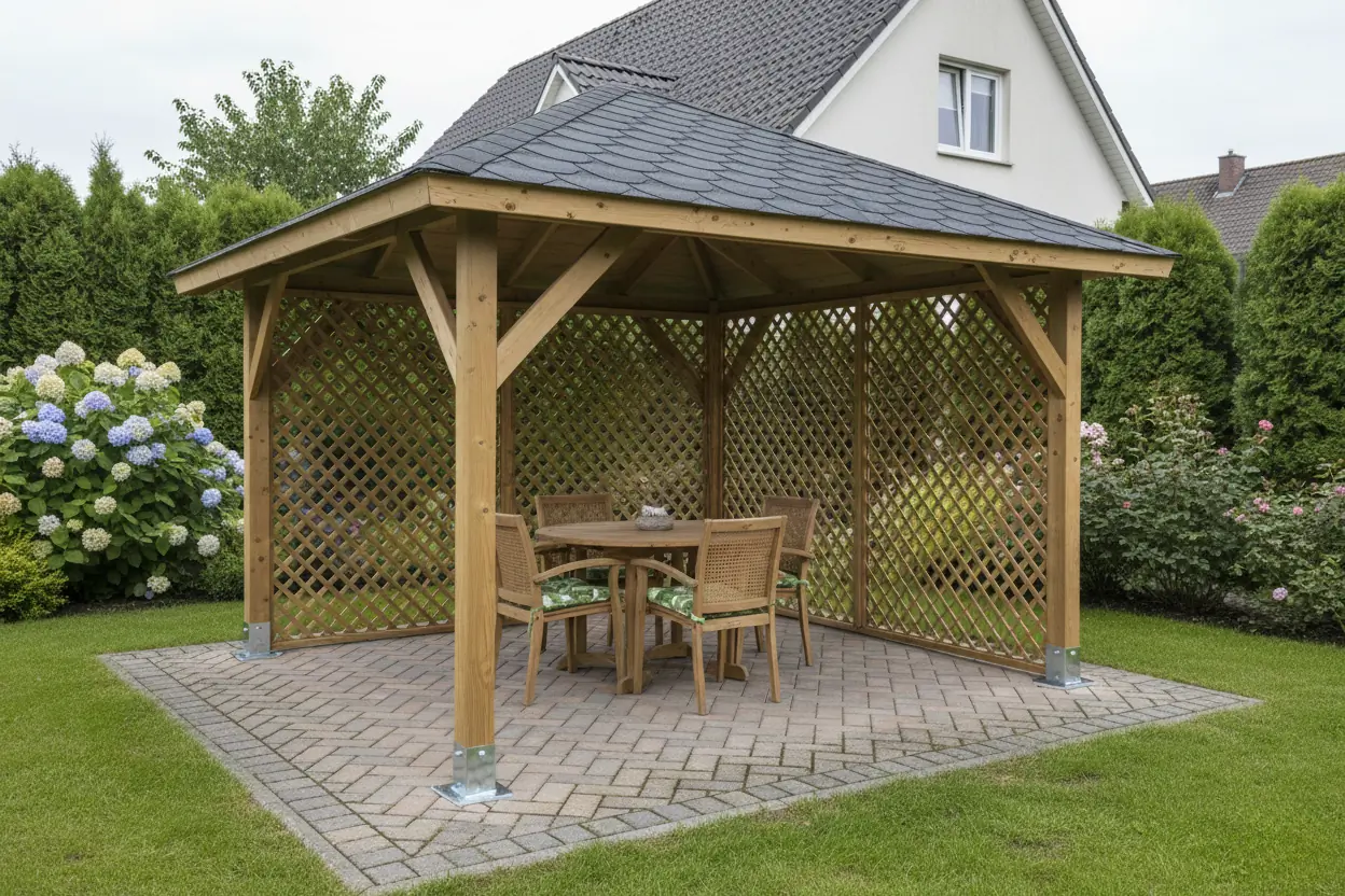 Zahradní Altán Sicílie je ideální pro rekreační využití zahrady. Součástí dodávky je montážní spojovací materiál a montážní návod, které usnadňují sestavení konstrukce.