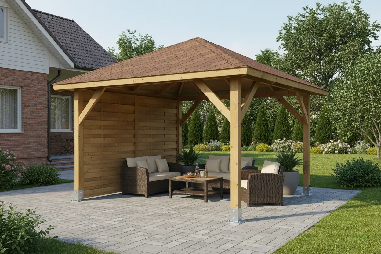 Tato stříška není povinná, ale dodává altánu elegantní a funkční vzhled. Vhodná zejména pro altány s grilem nebo otevřeným ohništěm.