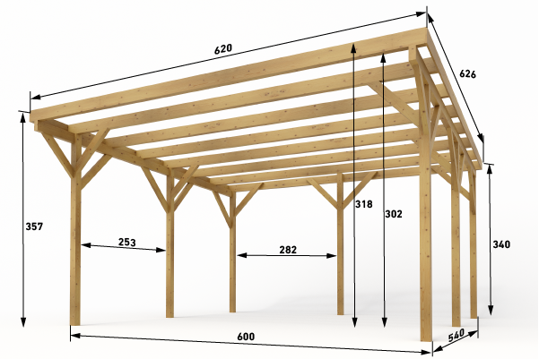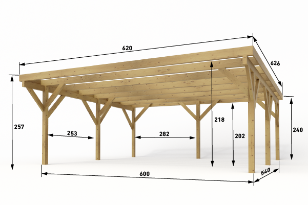 Dřevěný přístřešek na auto, resp. garážové stání typu ECO-LINE Extra poskytuje výbornou ochranu Vašeho majetku, aut, motorek atd. před nepříznivými klimatickými jevy, ale také přímým slunečním zářením, což může nenávratně poškozovat karosérie, ale i laky a povrchy. Konstrukce může být samostatně stojící nebo ukotvená k domu. Součástí dodávky je montážní spojovací materiál a montážní návod, které usnadňují sestavení konstrukce.