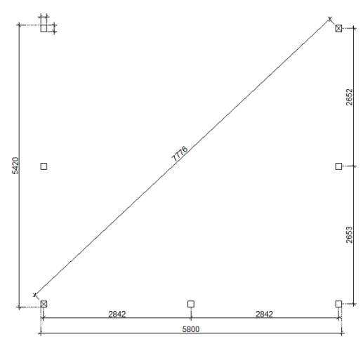 | Další rozměry | ● Užitná plocha: 32,4 m² ● Sklon střechy dozadu: 2° ● Krokve - 8x18 cm ● Pozednice - 8x16 cm |