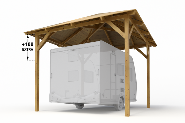 Objednejte si přístřešek včas, zejména během letní sezóny. Dodací lhůta v této době je obvykle 2–3 týdny. Dřevo má odolnou povrchovou úpravu, takže jej lze bezpečně skladovat a montovat později.