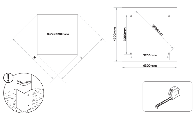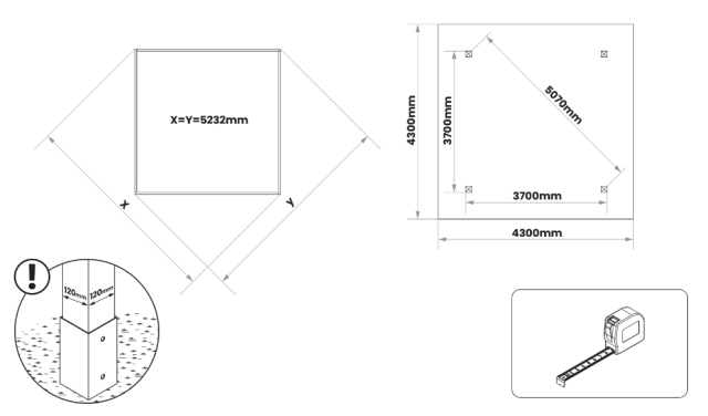 | Vnější rozměr mezi stojkami | 370 cm x 370 cm |