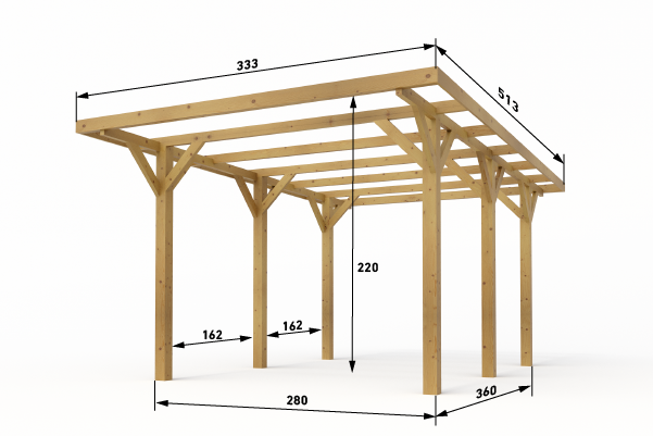 Dřevěný přístřešek na auto poskytuje výbornou ochranu vašeho majetku, aut, motorek atd. před nepříznivými klimatickými jevy, ale také přímým slunečním zářením, což může nenávratně poškozovat karoserii, laky i povrchy. Součástí dodávky je montážní spojovací materiál a montážní návod, které usnadňují sestavení konstrukce.