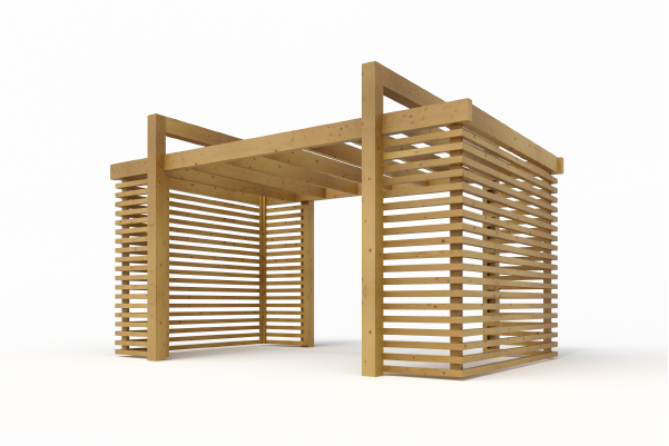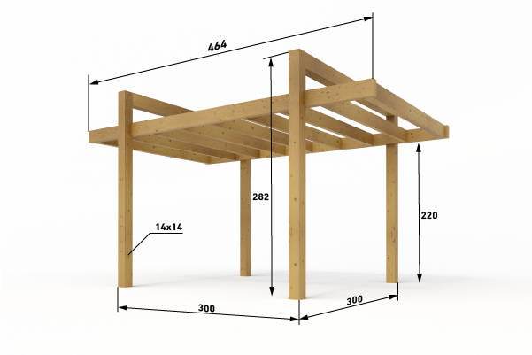 Zahradní Pergola Portal 300x300 BSH . Montážní spojovací materiál je součástí dodávky. Nosné sloupy altánu 14 x14 cm, krokve 5,6x18cm, pozednice - 8x18cm.