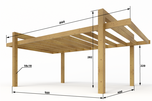 Zahradní Pergola Portal 500x400 BSH . Montážní spojovací materiál je součástí dodávky. Nosné sloupy altánu 18 x18 cm (BSH) ( zaoblené hrany ). Krokve 5,6x18cm, pozednice - 8x18cm.