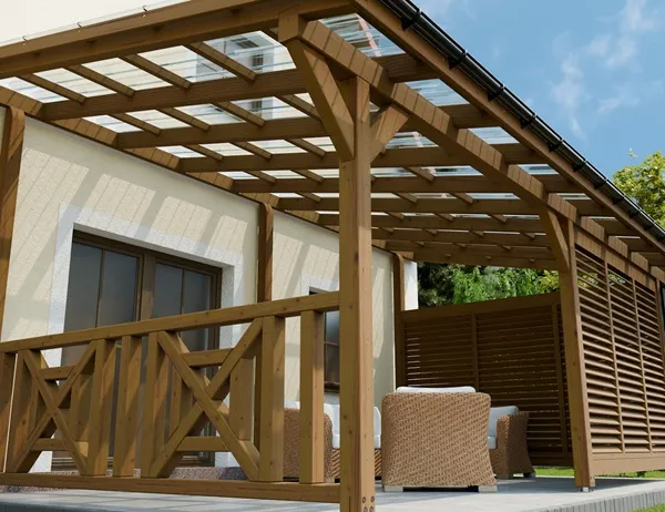 Dřevěná pergola ke zdi domu 600x350 Premium