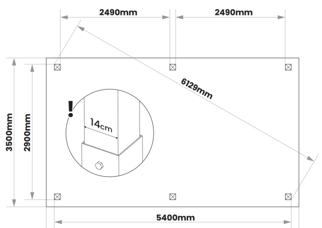 | Vnější rozměr mezi stojkami | 290 cm x 540 cm |