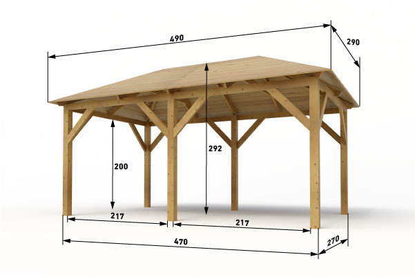 Přístřešek je vyroben z kvalitního smrkového dřeva, ošetřeného ekologickou tlakovou impregnací TANALITH® E. Díky tomu je odolný vůči povětrnostním vlivům a připraven k dalšímu natření barvou dle vašeho výběru. Přístřešek dodáváme ve formě stavebnice. Střešní prkna jsou součástí dodávky, palubky za příplatek. (Všechny prvky jsou hoblované a frézované).