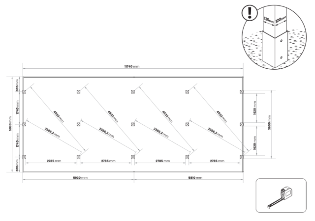 | Vnější rozměr mezi stojkami | 360 cm x 1174 cm |